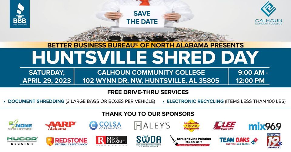 Huntsville Shred Day, Calhoun Community College, Huntsville, April